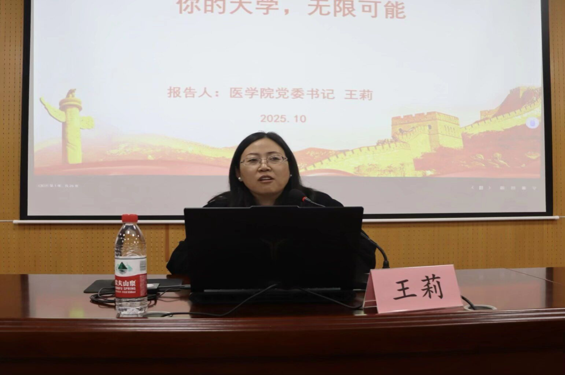 10月21日晚19:00,医学院在2号学术报告厅举办新生入学教育系列讲座暨思政课。本次讲座由医学院党委书记王莉主讲,围绕“你的大学,无限可能”这一主题,与在场近140名新生共同探索大学生活的丰富内涵与发展路径。