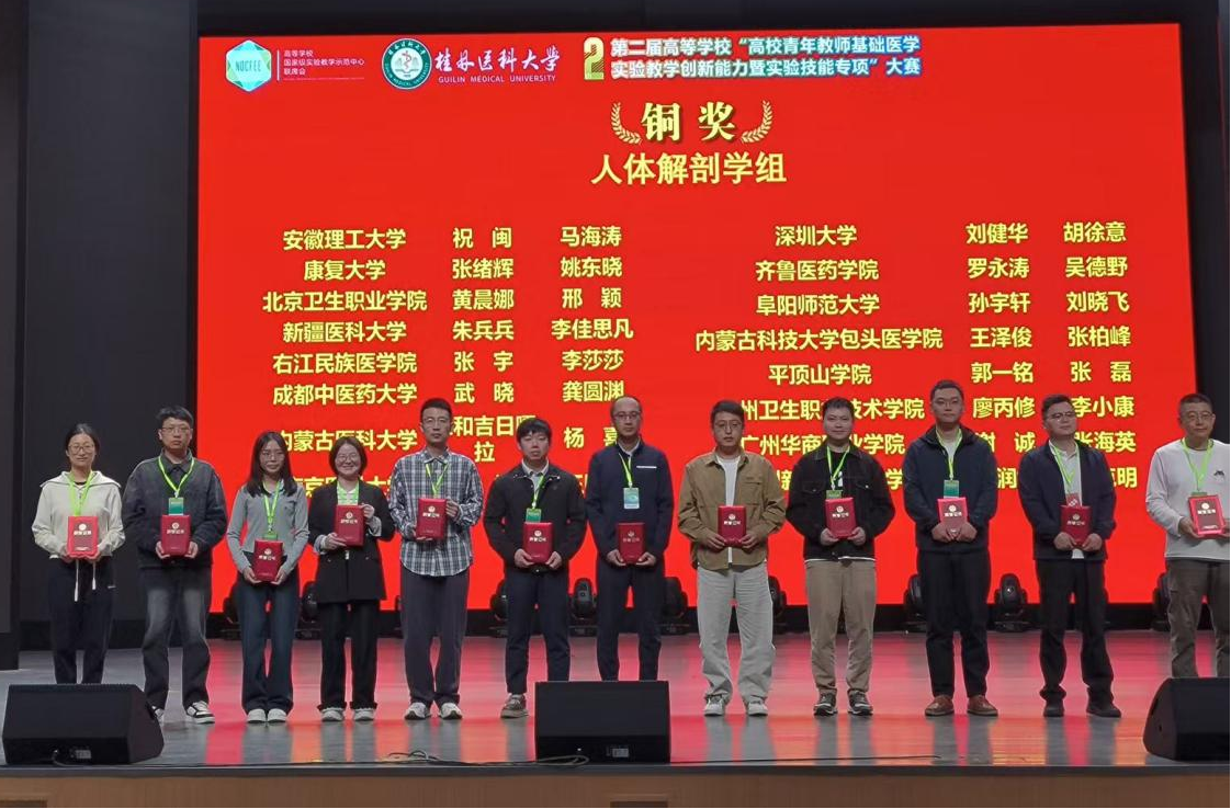10月26日,全国第二届高等学校“青年教师教学创新能力(基础医学实验技能专项)”大赛在广西桂林圆满落幕,我院教师郭一铭、张磊和于瑞雪分别荣获人体解剖学组和机能学组铜奖。