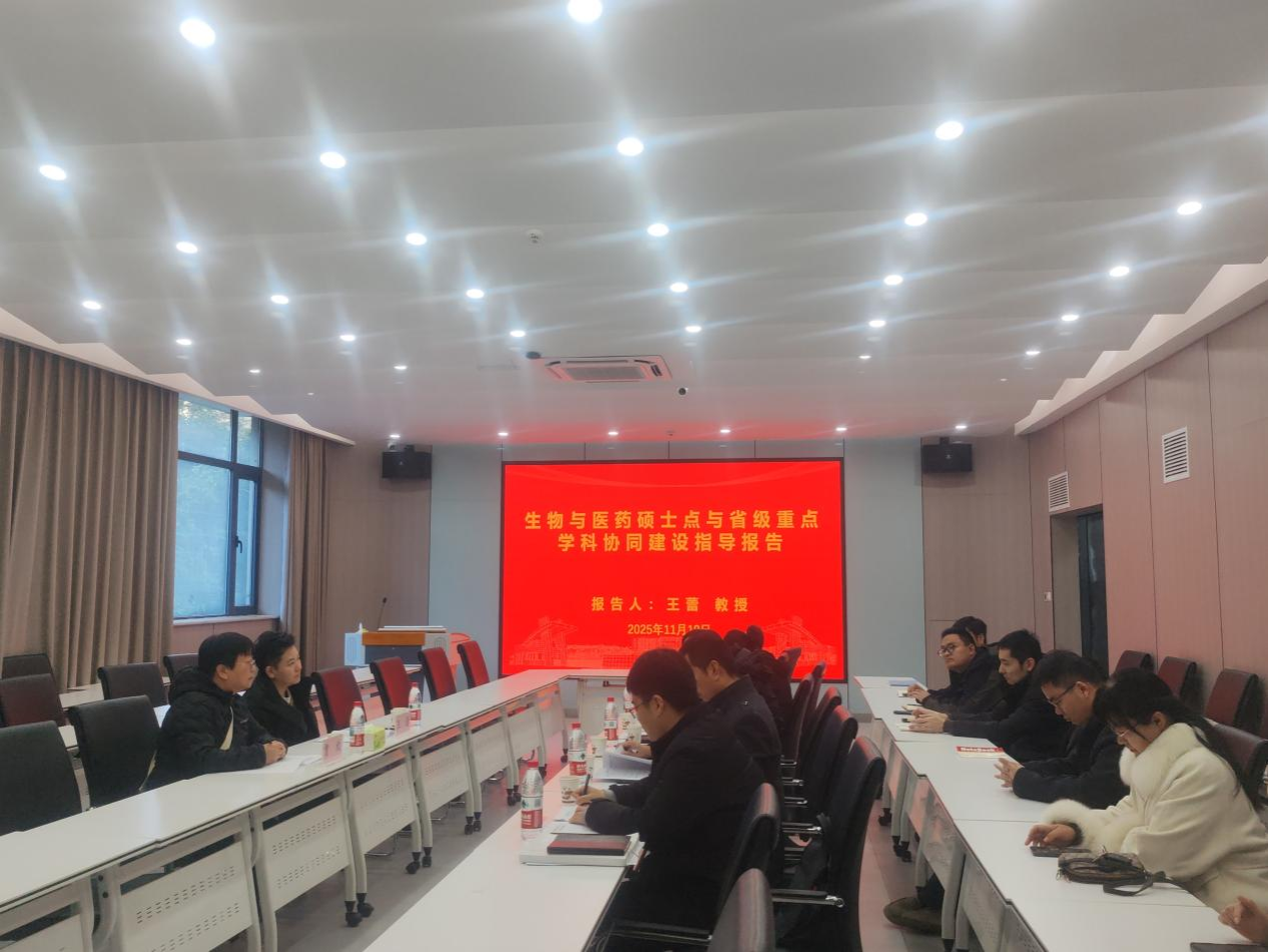 随后,医学院副院长高华山从学科方向设置、人才培养目标、课程体系构建、实践基地建设、师资队伍结构、科研成果积累等方面,详细汇报了生物与医药硕士点建设的具体情况及当前面临的主要问题与挑战。