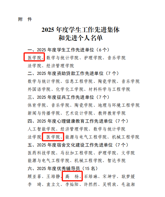 4月1日,平顶山学院公布《关于表彰2025年度学生工作先进集体和先进个人的决定》,医学院斩获多项荣誉,喜获佳绩。