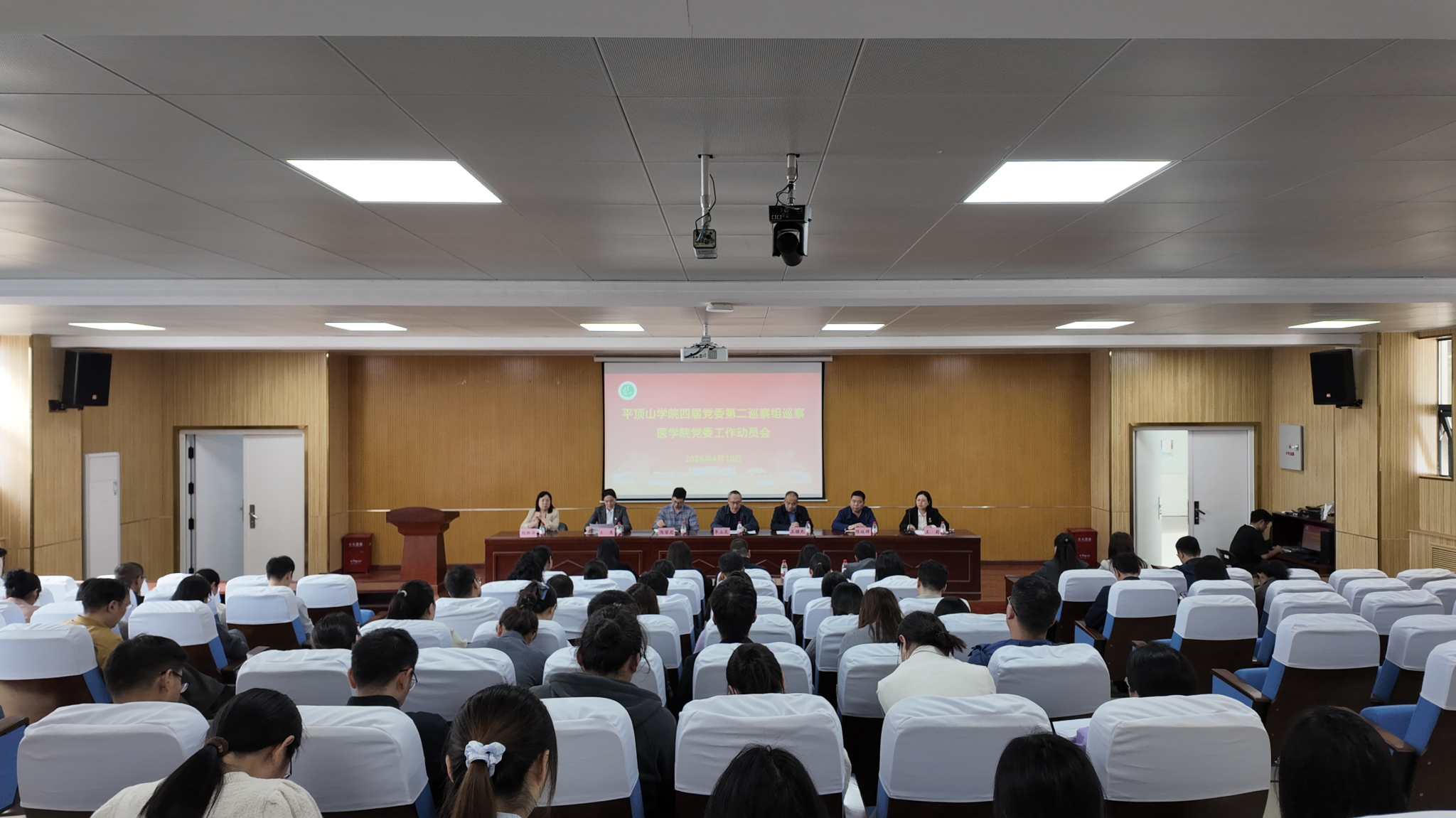 根据学校党委巡察工作安排,4月10日下午,四届党委第二巡察组巡察医学院党委工作动员会在崇文校区1号报告厅举行。会前,党委第二巡察组组长李玉良主持召开与医学院党委书记王莉和院长郑新华的见面沟通会,通报了本轮巡察工作的任务和要求。会上,党委第二巡察组组长李玉良作了动员讲话,医学院党委书记王莉主持会议并作表态讲话。校纪委王耀先、校党委组织部陈留彪、党委巡察工作办公室陈延辉、巡察组全体成员、医学院全体无课教职工和学生代表六十余人参加了动员会。