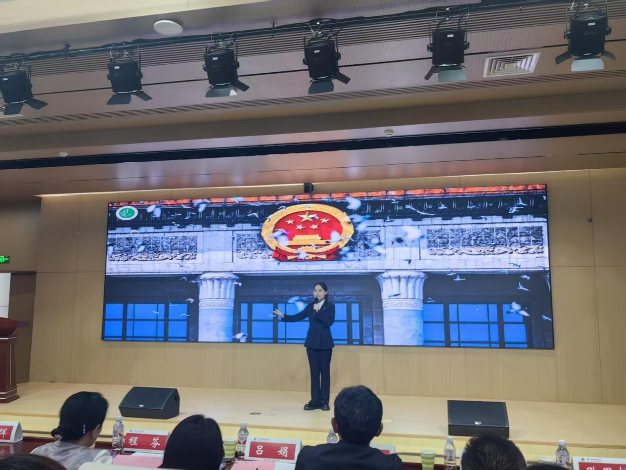 比赛现场,我院药学2025级维吾尔族新生阿依夏·阿肉甫以《中华一家亲,同心向未来》为题,带领现场听众领略了新疆的风土人情、发展历史,生动激昂讲述了铸牢中华民族共同体意识的深刻内涵,给现场评委老师留下了深刻印象,展现了良好的精神风貌。