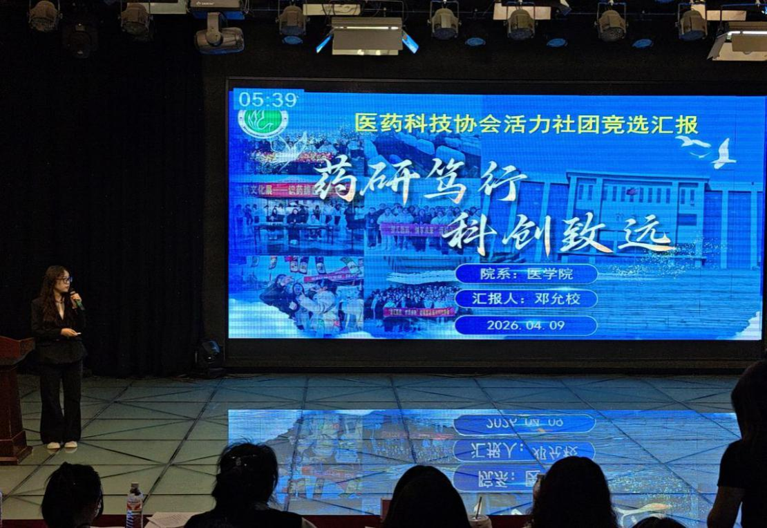 4月9日下午,我校2026年度“活力社团”评选活动在湖滨校区图书馆T610演播厅如期举行。本次活动由校团委主办、校学生社团联合会承办,全校23个特色社团同台竞技,我院医药科技协会、爱牙联盟社代表医学院参赛。