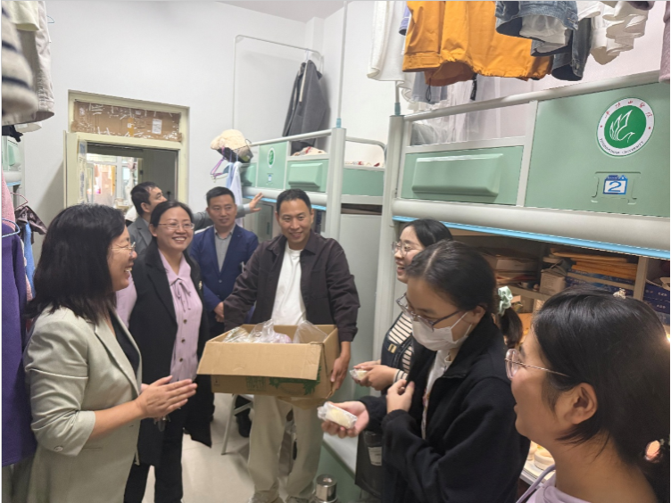 中秋国庆双节期间,为传递学院关怀、保障留校学生度过平安祥和的假期,10月1日,医学院党委书记王莉、院长郑新华、党委副书记夏乐、副院长高华山、副院长白现广及全体辅导员组成慰问小组,深入学生宿舍,开展走访慰问活动。