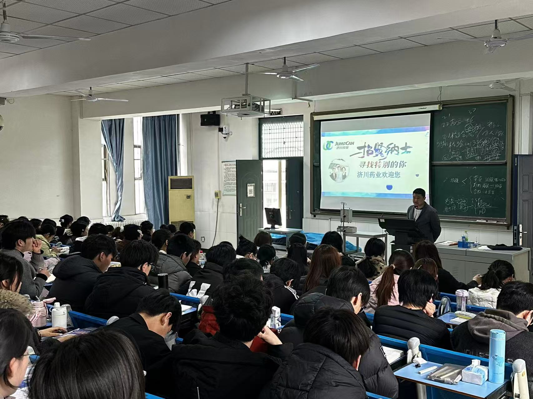 招聘会上,陈明、李雪岩围绕济川药业发展历程、核心产品布局、研发平台建设、岗位需求结构、职业晋升通道等方面对同学们进行系统介绍,重点讲解制药生产类相关岗位实习就业政策,对专业能力、实践技能以及综合素质的具体要求。企业负责人鼓励学生提前规划职业生涯,提升科研思维、实验操作能力和数字化工具应用能力,为未来进入医药行业奠定坚实基础。